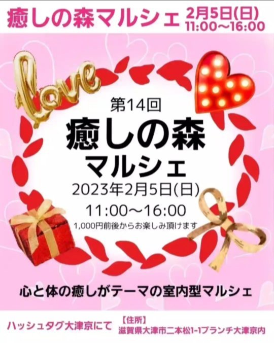 ブランチ大津京内ハッシュタグ大津京にて「第14回癒しの森マルシェ」が、2023年6月4日(日)に開催されます。