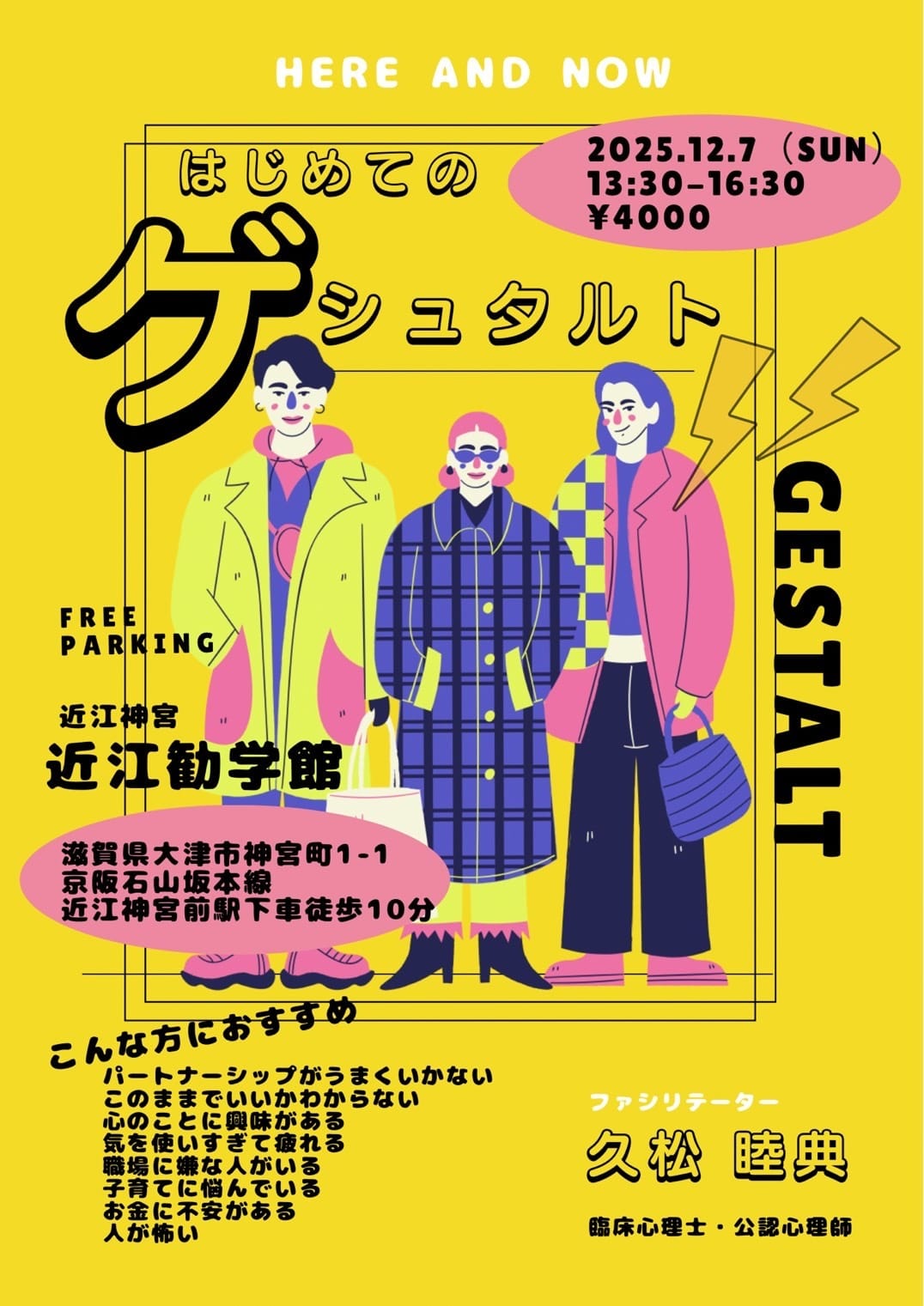 ・心理学やカウンセリングに興味があり、ゲシュタルト療法を体験してみたい方。