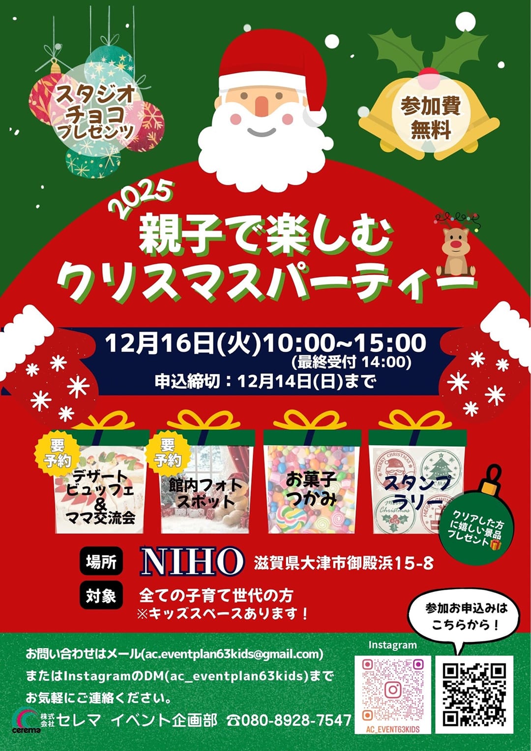 2025年12月16日(火)に、親子で楽しむクリスマスパーティー2025を開催いたします。