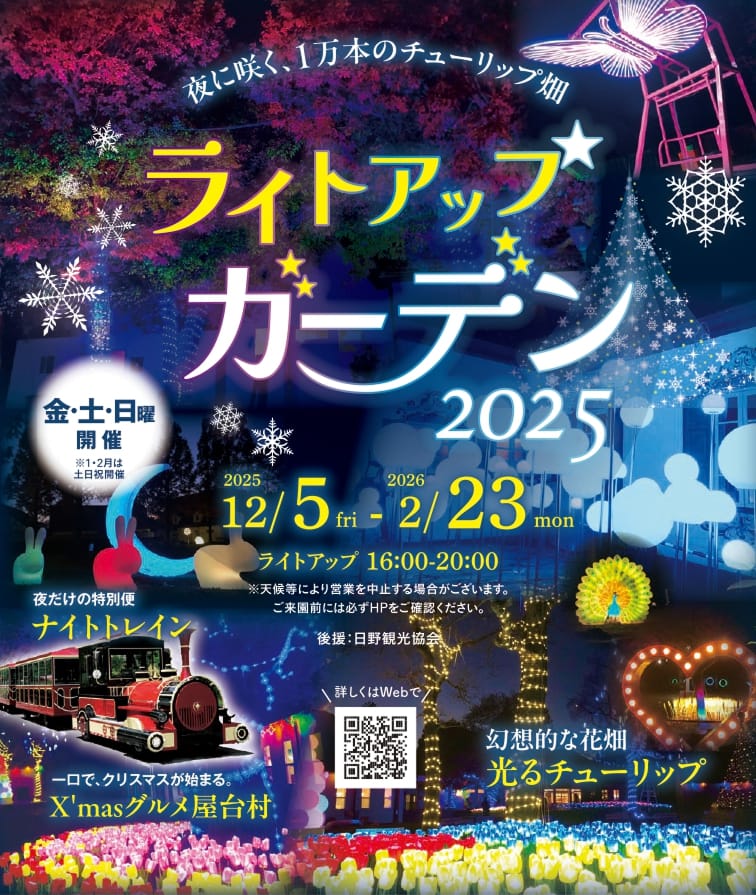 日野町にあるブルーメの丘で、冬のイルミネーションイベント「ライトアップガーデン2025」が今年も開催されます。