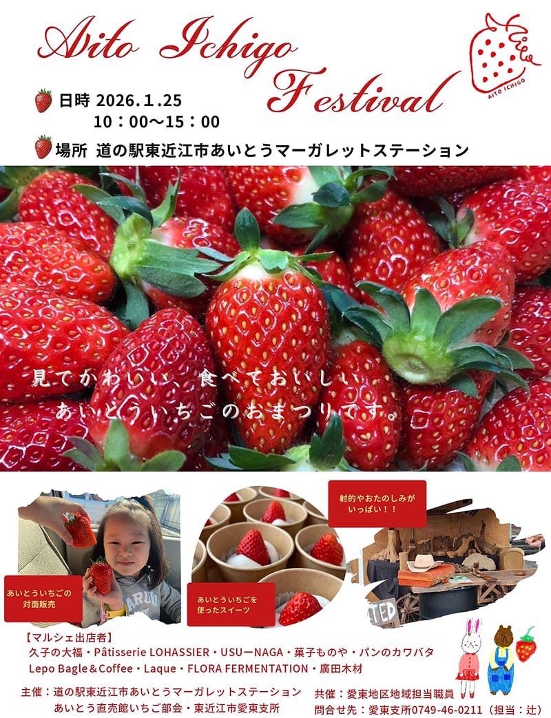 道の駅東近江市あいとうマーガレットステーションにて、旬のいちごが主役のイベント「Aito Ichigo Festival」が開催されます。