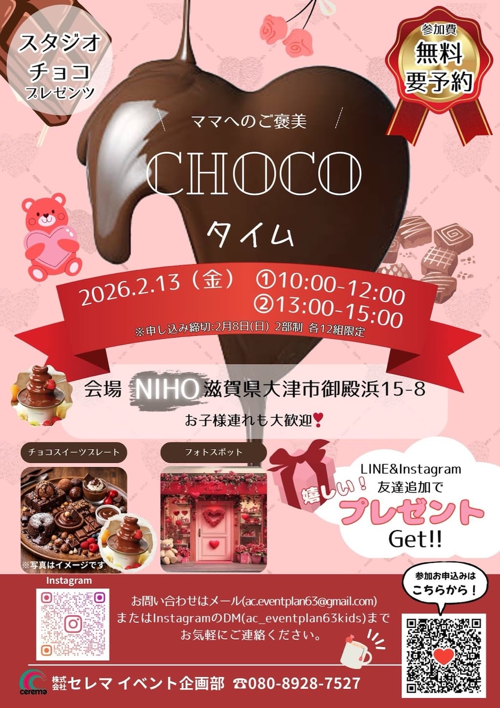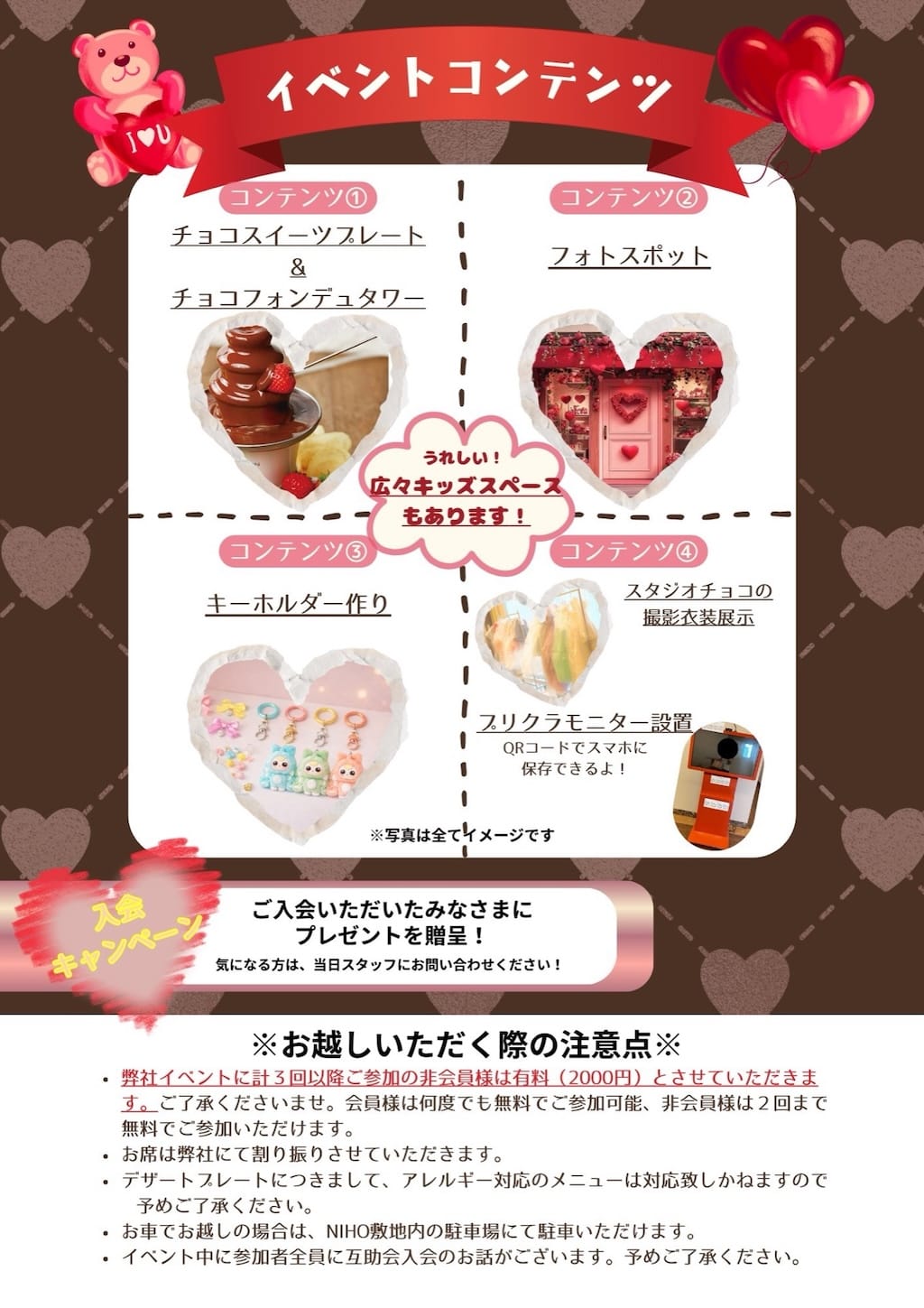 チョコレートスイーツや、キーホルダー作り、フォトスポットでの写真撮影を楽しんでいただけるイベントです。