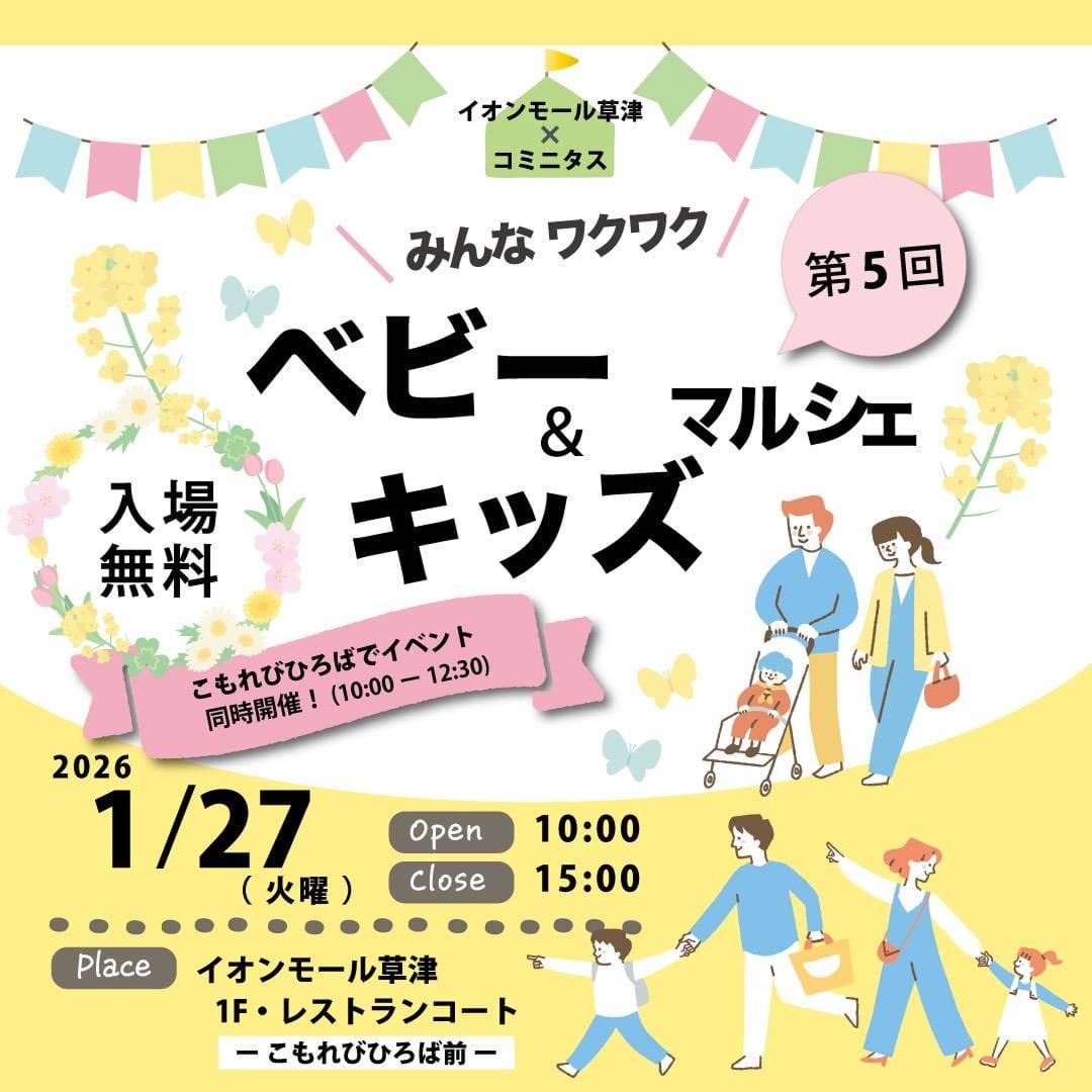 イオンモール草津で、ベビー&キッズ向けアイテムが充実したマルシェイベント「第5回 こもれびマルシェ(ベビー&キッズマルシェ)」が開催されます。
