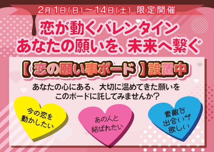 「占いの館千里眼」では、バレンタインシーズンにあわせ、2026年2月14日(土)までの期間、恋愛成就を願う特別企画「恋が叶うバレンタインメッセージボード」を設置いたします。