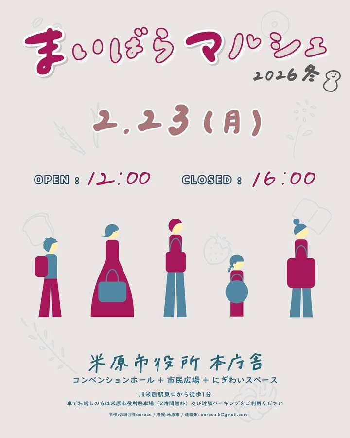 米原市役所本庁舎にて、「まいばらマルシェ」が2026年2月23日(月曜日・祝日)に開催されます。