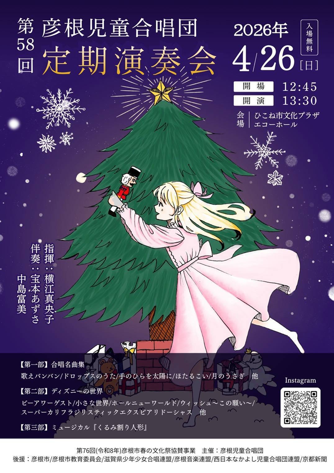 2025年4月26日(日)、ひこね市文化プラザにて「彦根児童合唱団 第58回 定期演奏会」を開催します。入場無料です。