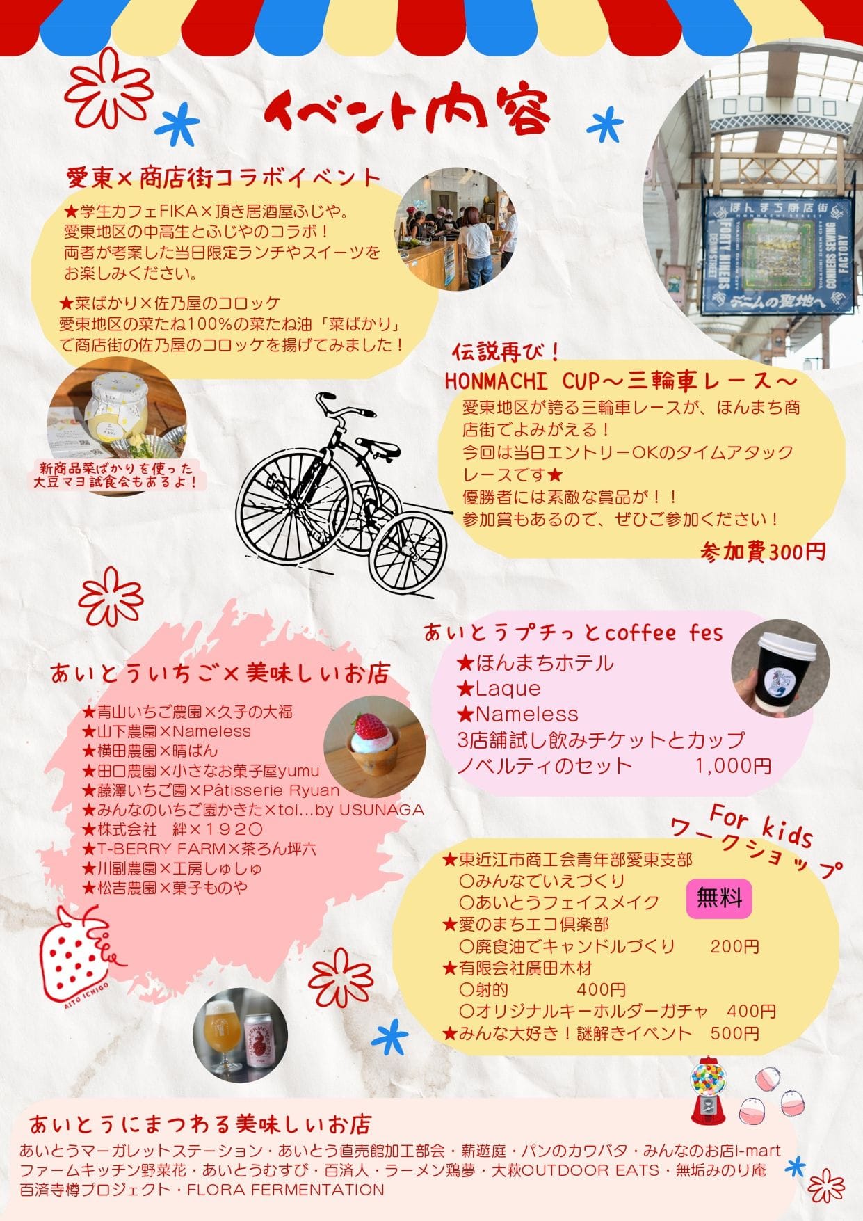 会場は近江鉄道・八日市駅前すぐとアクセスも良好です。愛東と商店街の魅力がぎゅっと詰まったこのイベント、ぜひ足を運んでみてくださいね!