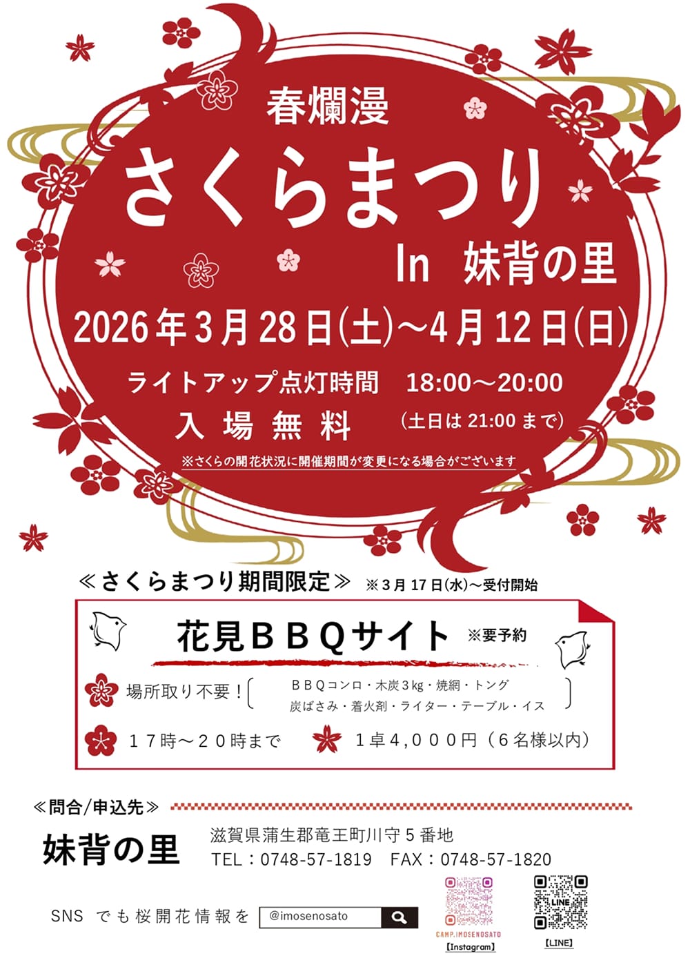 竜王町の自然豊かなレジャースポット「妹背の里」にて、春の恒例イベント「さくらまつり」が今年も開催されます。