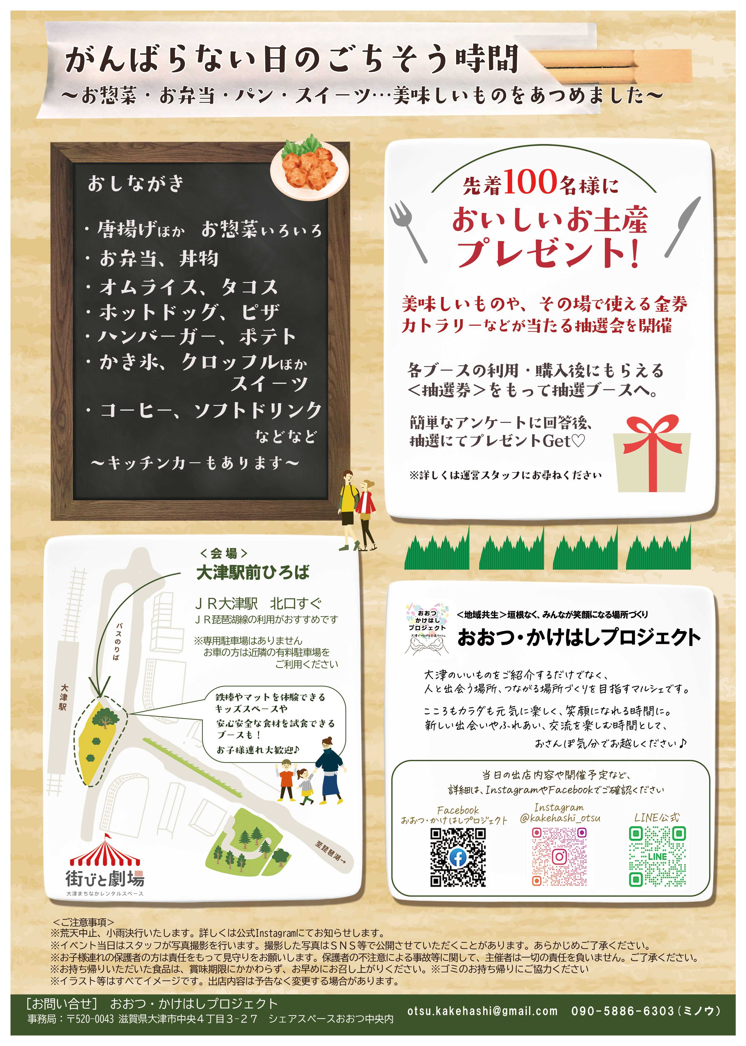 ——そんな日に遊びに来てほしいイベント『おかずマルシェ』を大津駅前ひろばで開催します。